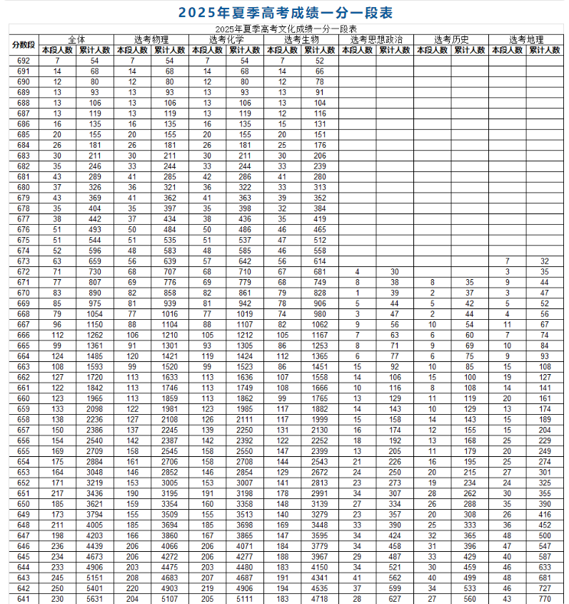 由于每年高考分数线受影响因素较多,学校录取分数线波动较大,仅仅通过分数线去查看自己能上的大学,准确率不高,因此一分一段表非常重要。
