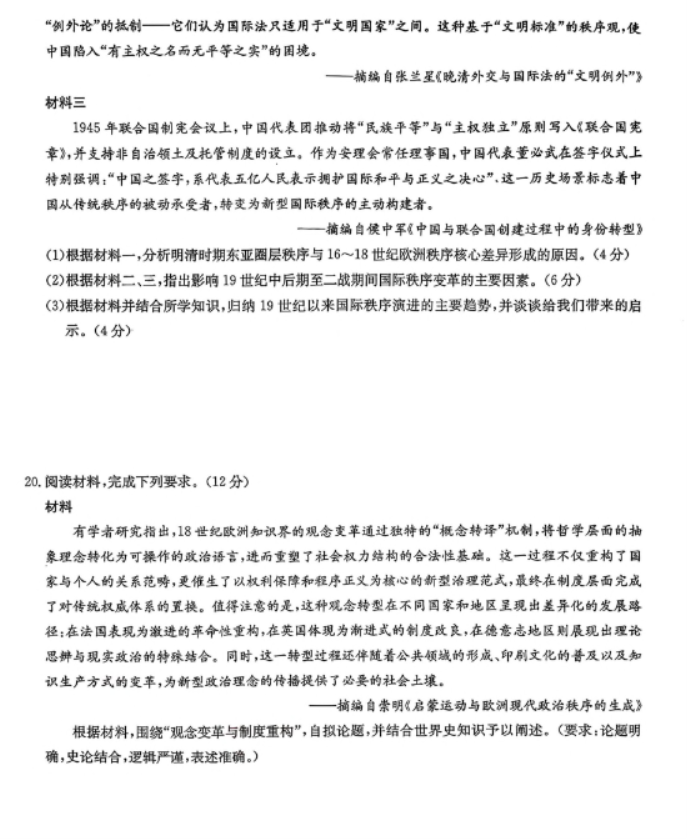 九师联盟2026届高三12月联考教学质量监测历史试题及答案解析