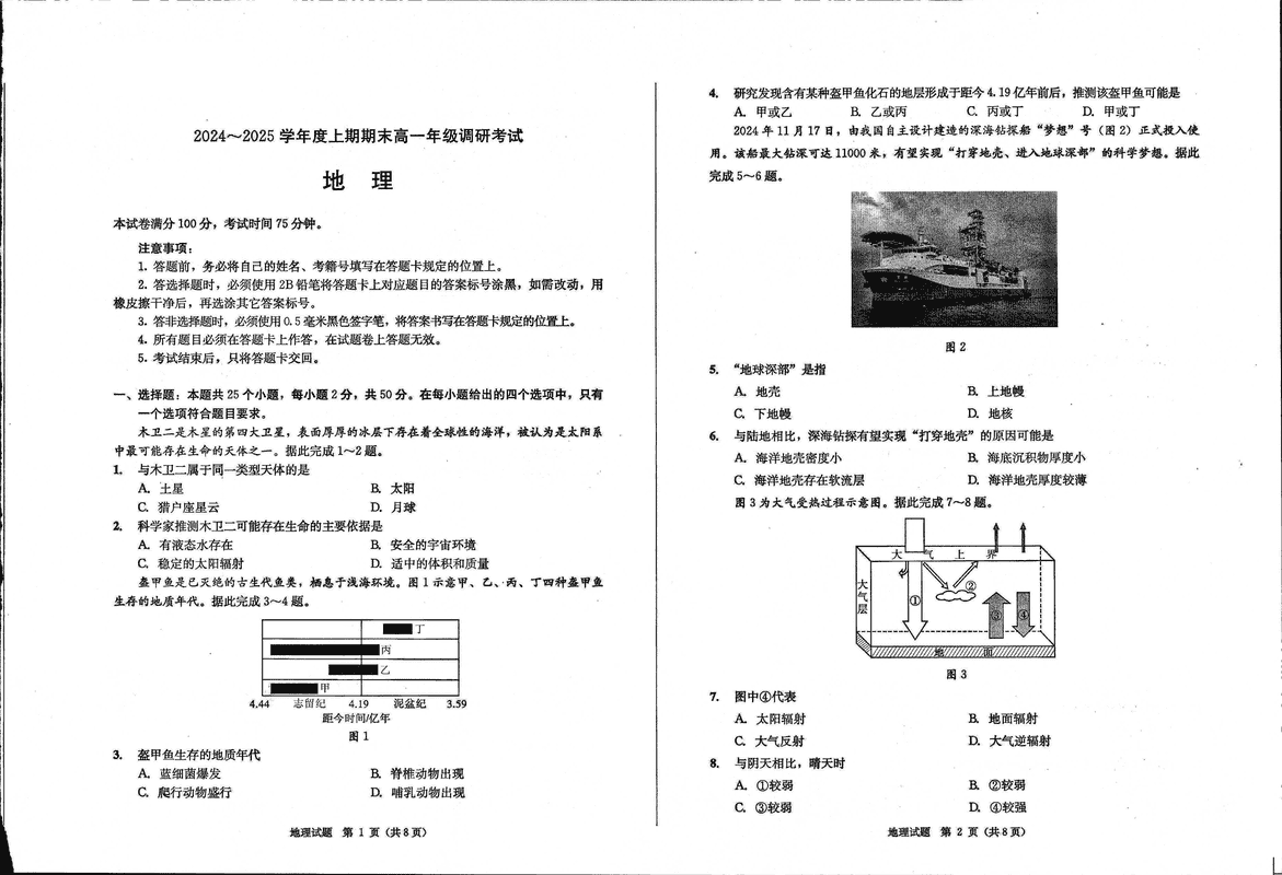 四川省成都市2025年高一上期期末统一调研地理试题质量较高,题型多样,将作为考察考生对相应考点的掌握程度,考后将及时整理试题及答案解析相关信息,以供考生学习交流!