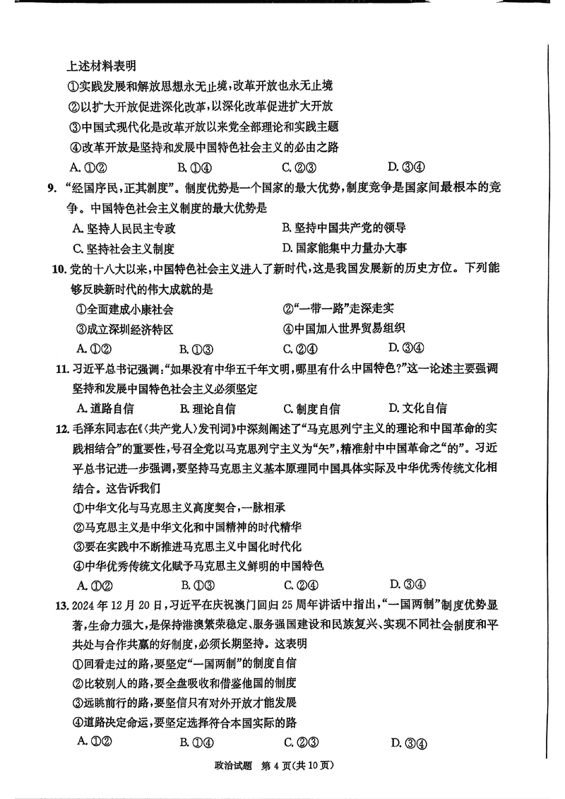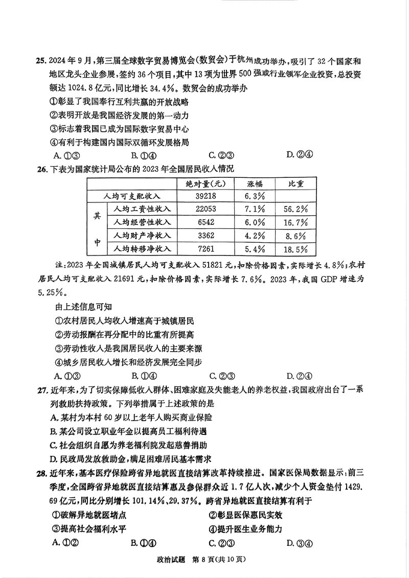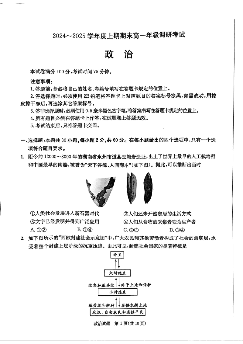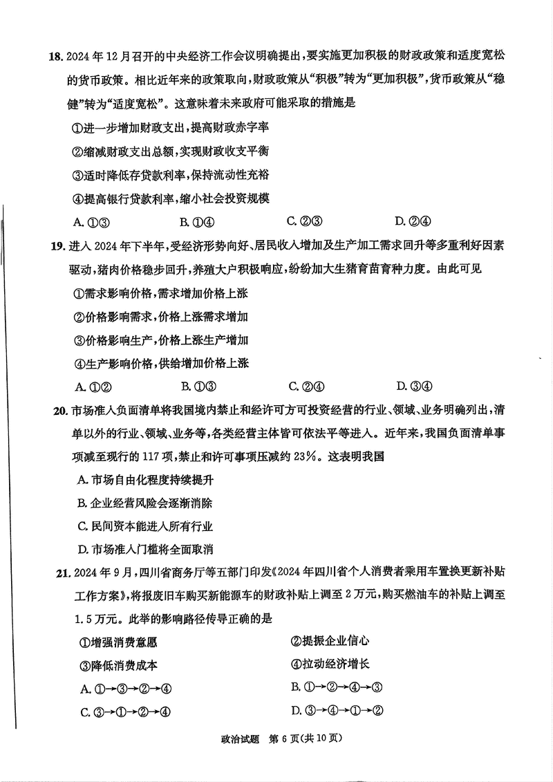 四川省成都市2025年高一上期期末统一调研政治试题质量较高,题型多样,将作为考察考生对相应考点的掌握程度,考后将及时整理试题及答案解析相关信息,以供考生学习交流!