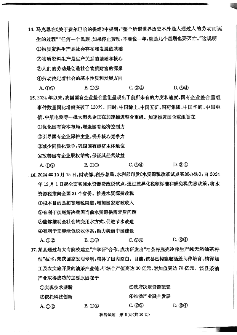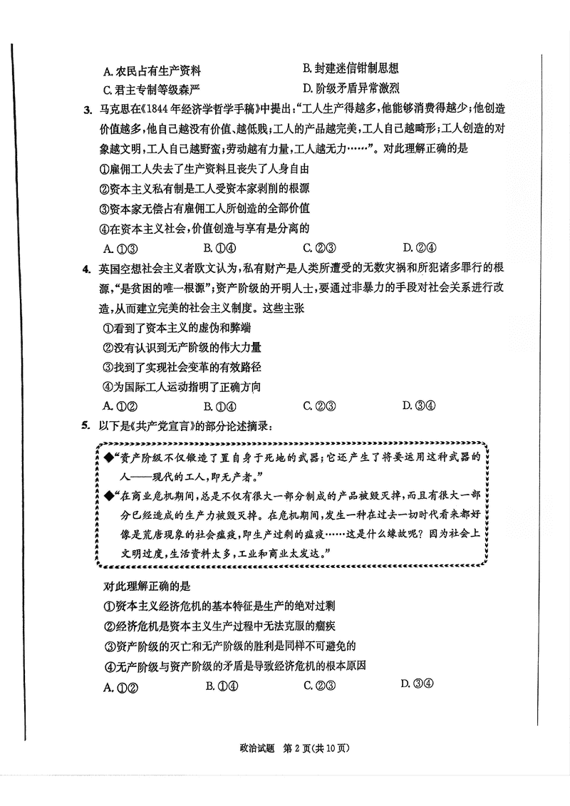 政治试题及答案解析