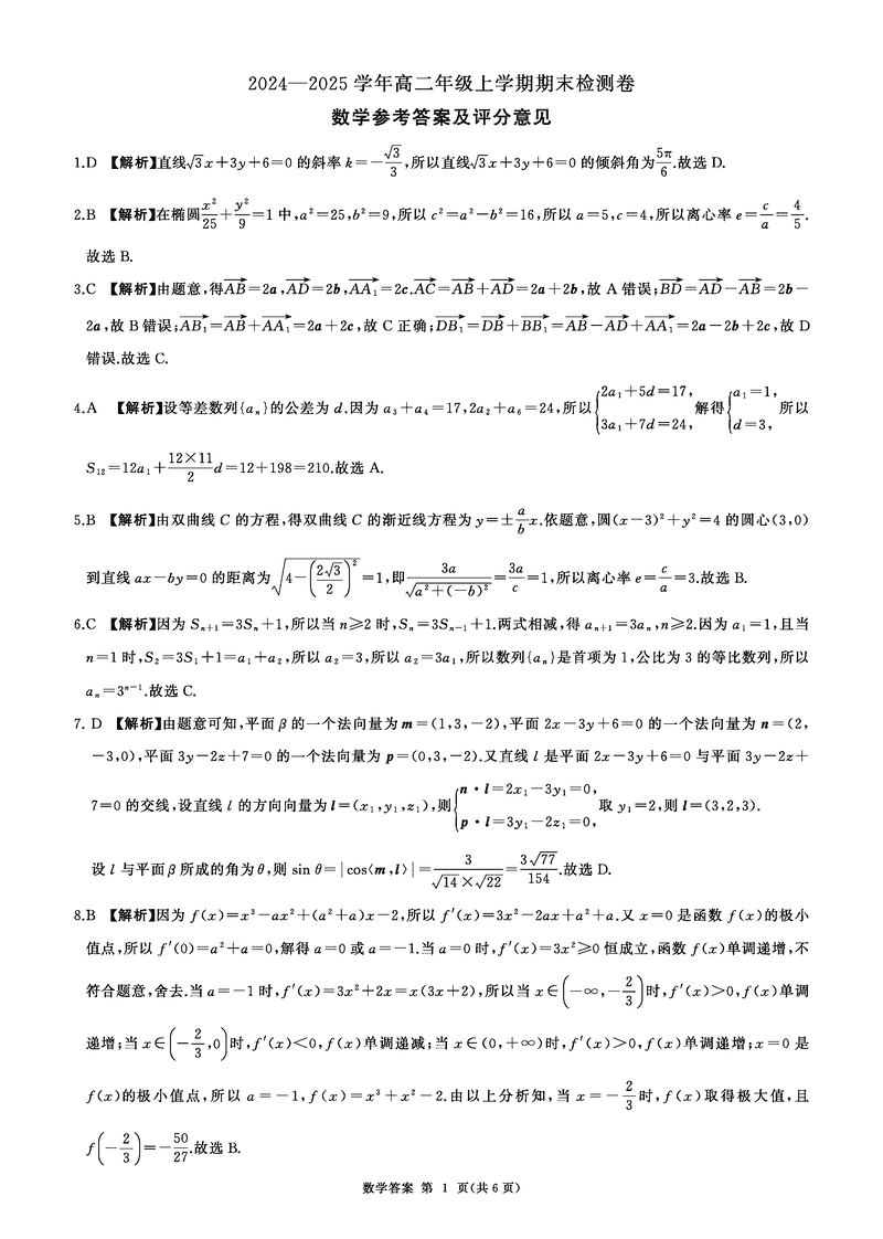 湖南省百师联盟2024-2025学年高二上学期1月期末联考数学试题质量较高,题型多样,将作为考察考生对相应考点的掌握程度,考后将及时整理试题及答案解析相关信息,以供考生学习交流!