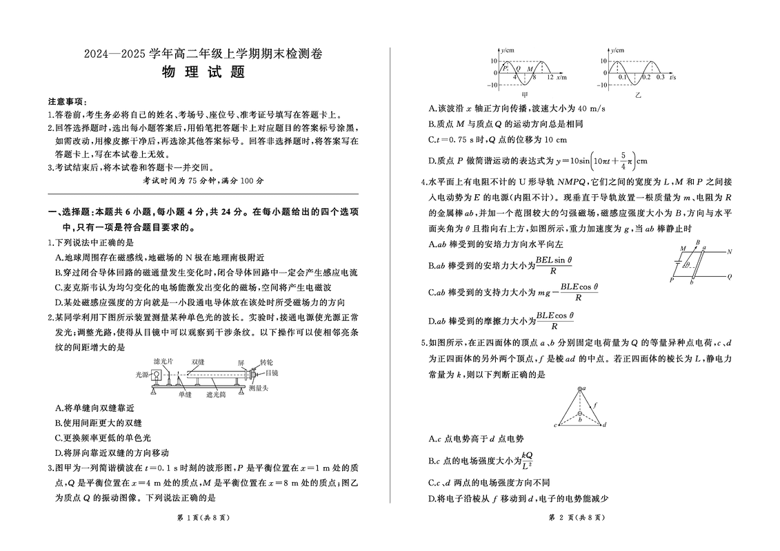 湖南省百师联盟2024-2025学年高二上学期1月期末联考物理试题质量较高,题型多样,将作为考察考生对相应考点的掌握程度,考后将及时整理试题及答案解析相关信息,以供考生学习交流!
