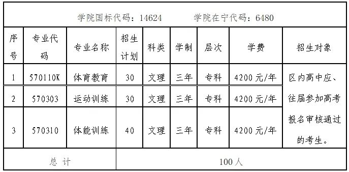 宁夏体育职业学院2025年高职单招招生简章