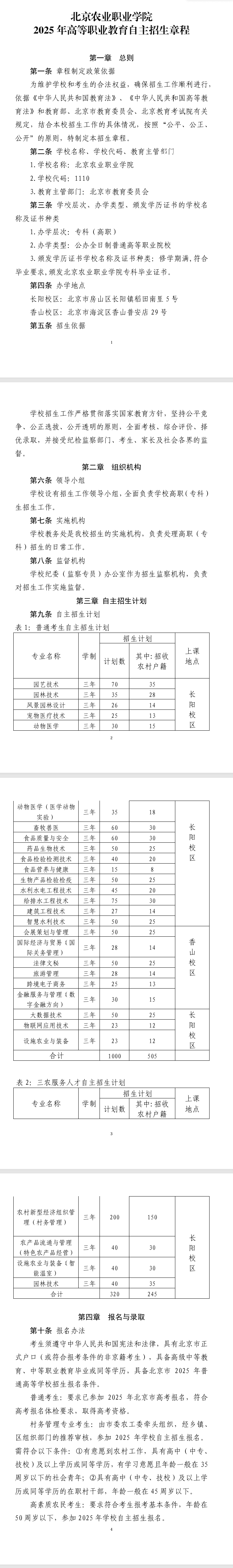 2025年北京农业职业学院高职自主招生章程