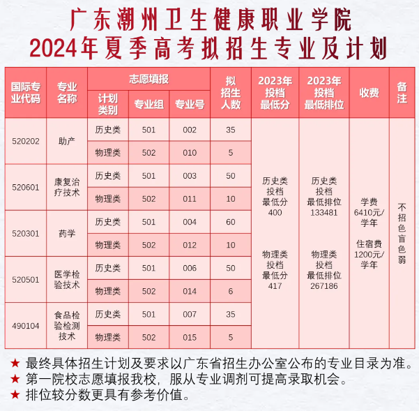 广东潮州卫生健康职业学院2025年招生计划预计将于6月中下旬公布,本文为大家整理的是广东潮州卫生健康职业学院2024年招生计划,主要包含招生专业、招生类别、各专业招生人数等信息,希望对大家有所帮助,如有变动或异议,请以各省市教育考试院或学校公布的信息为准。