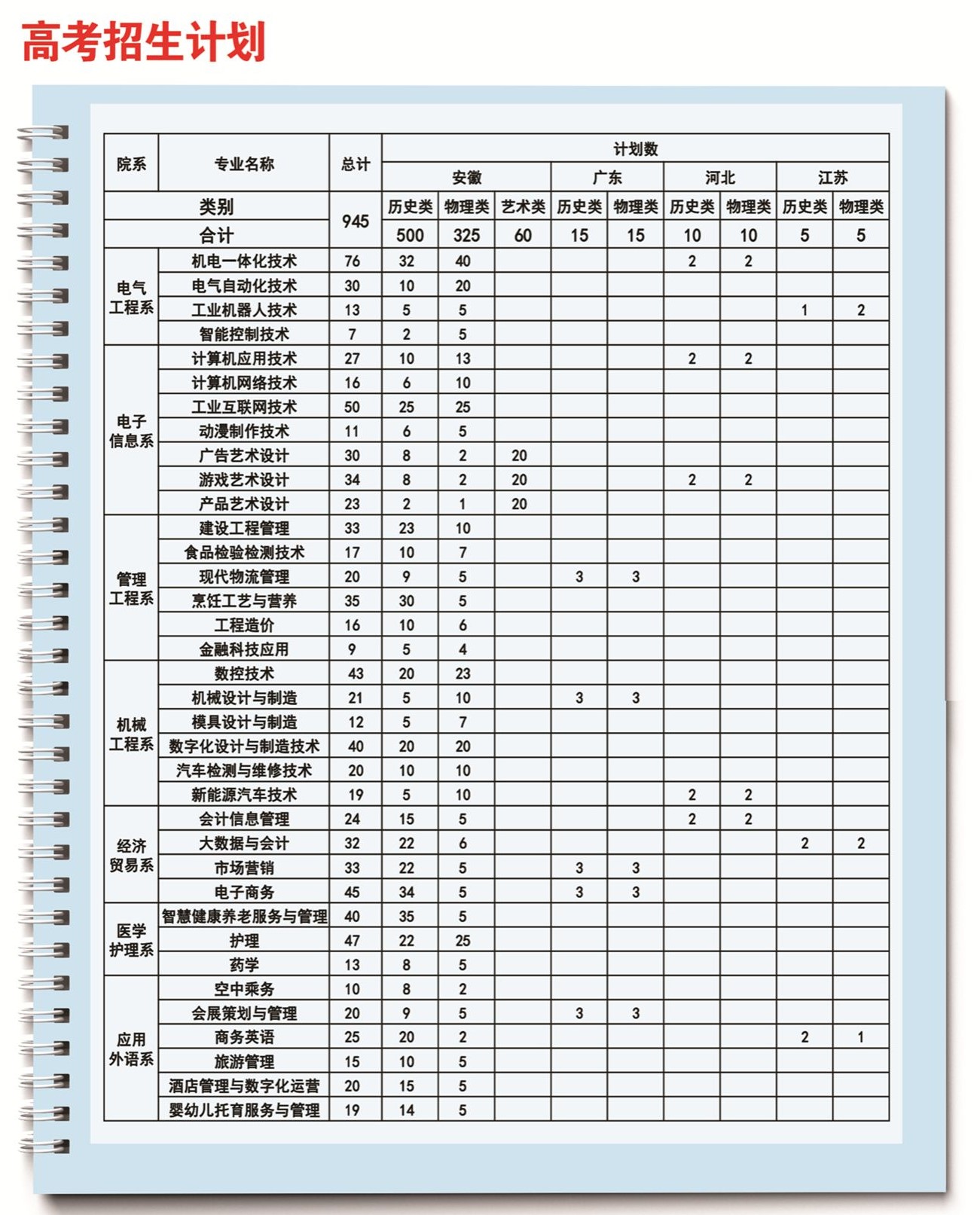 马鞍山职业技术学院招生计划-各专业招生人数是多少