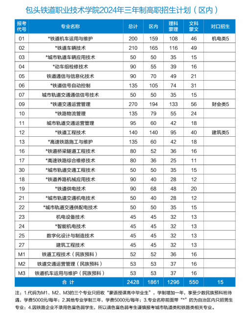 包头铁道职业技术学院招生计划-各专业招生人数是多少