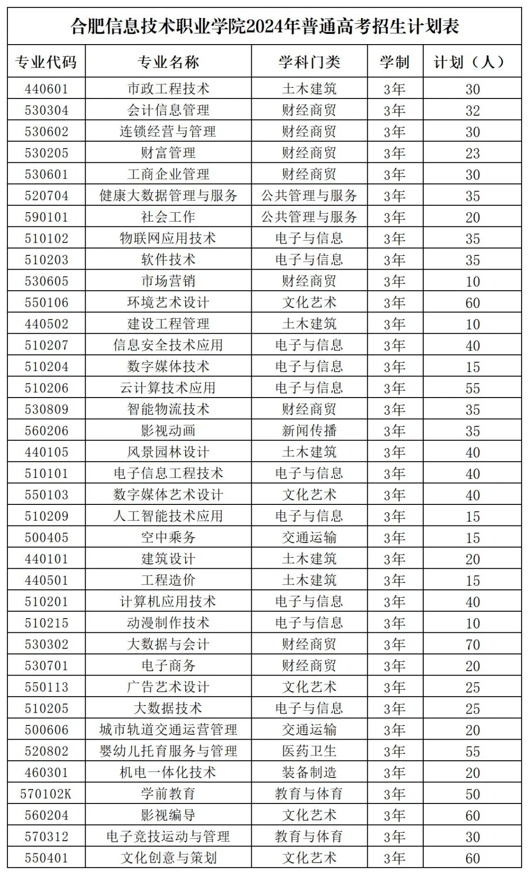合肥信息技术职业学院招生计划-各专业招生人数是多少