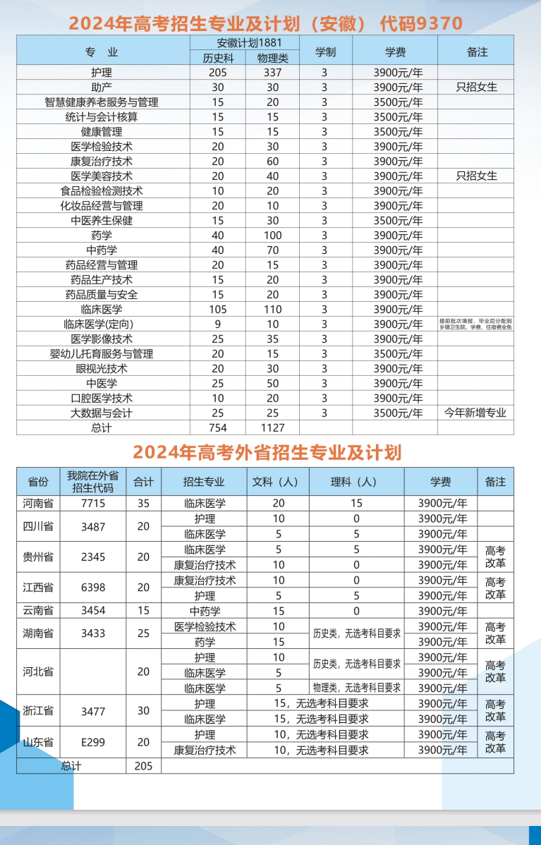 皖西卫生职业学院招生计划-各专业招生人数是多少