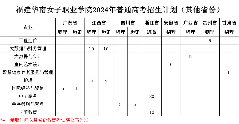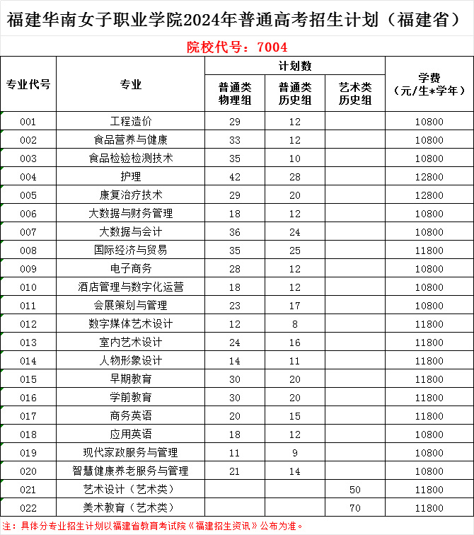 福建华南女子职业学院招生计划-各专业招生人数是多少