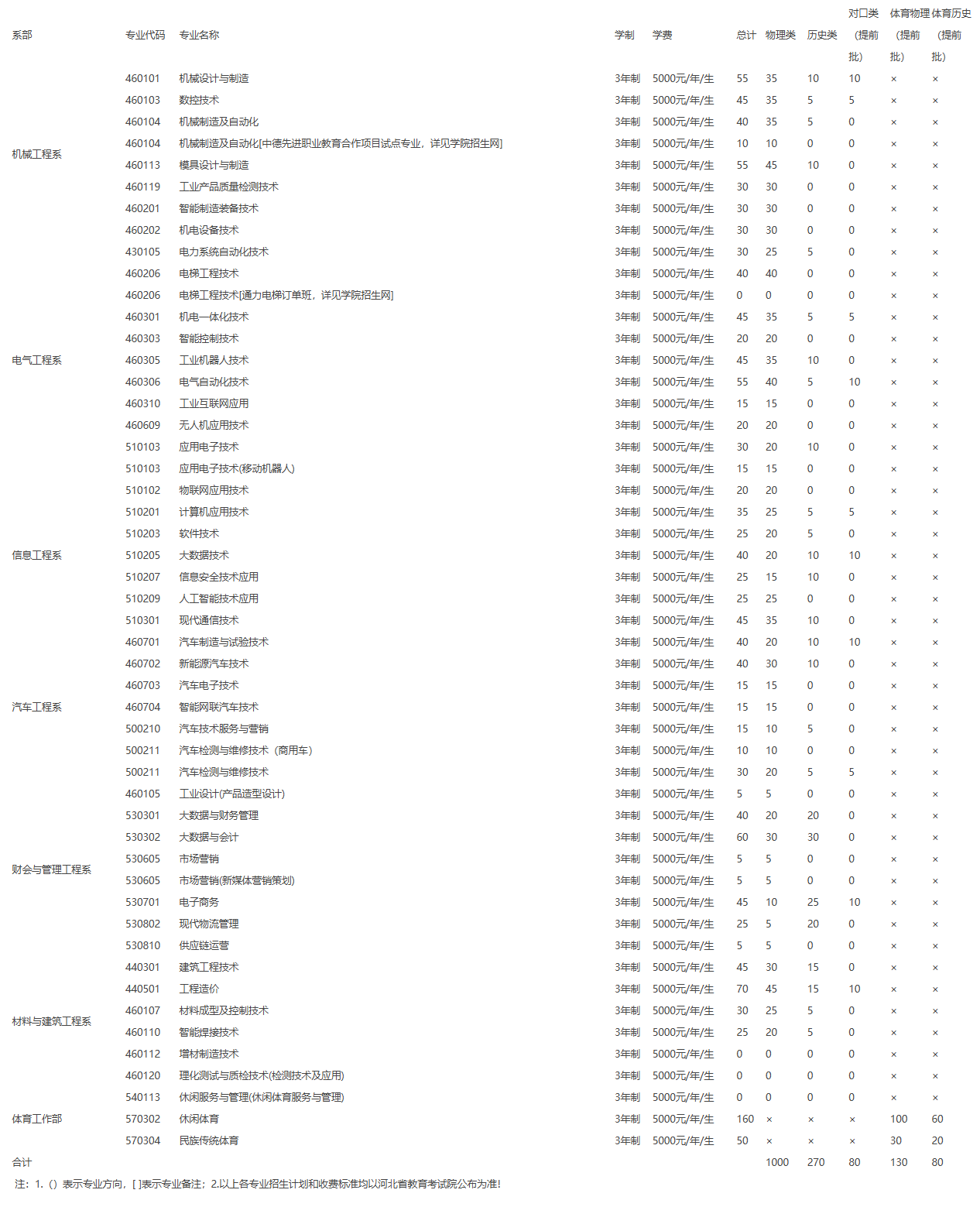 河北机电职业技术学院招生计划-各专业招生人数是多少