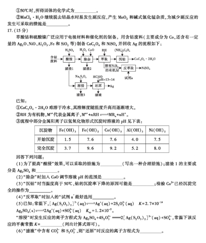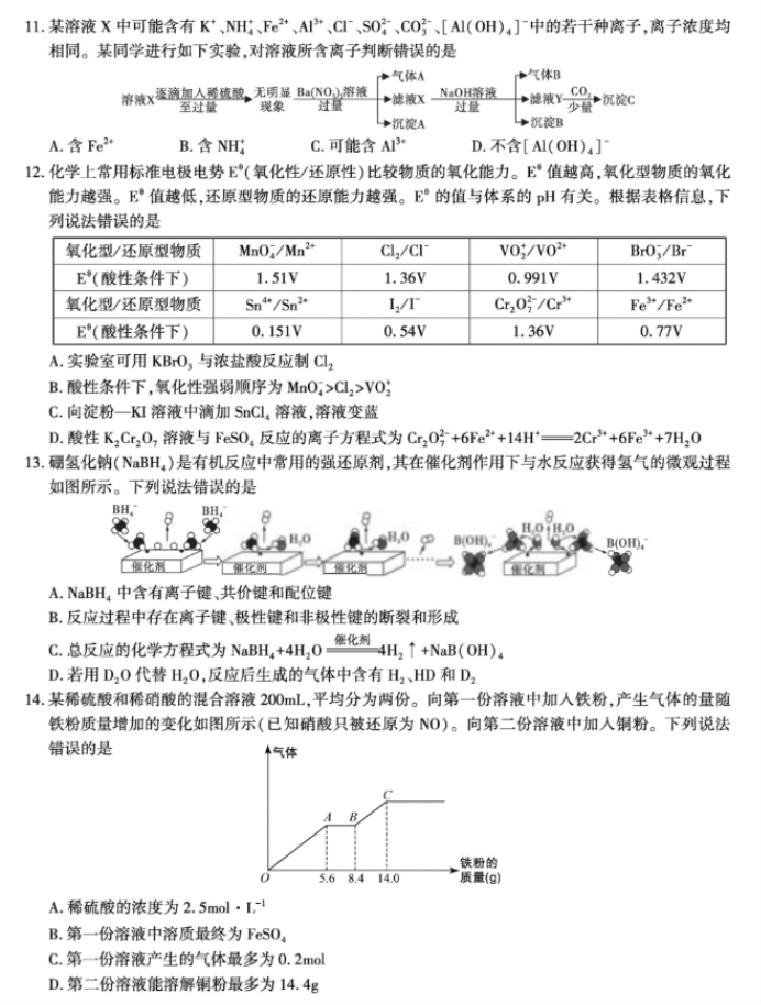 2026届江西九江十一校高三第一次联考化学试题及答案解析