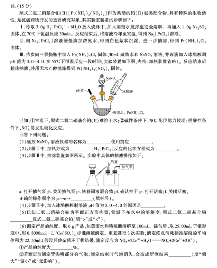2025届湖南师大附中高三上学期月考卷(三)化学试卷及参考答案