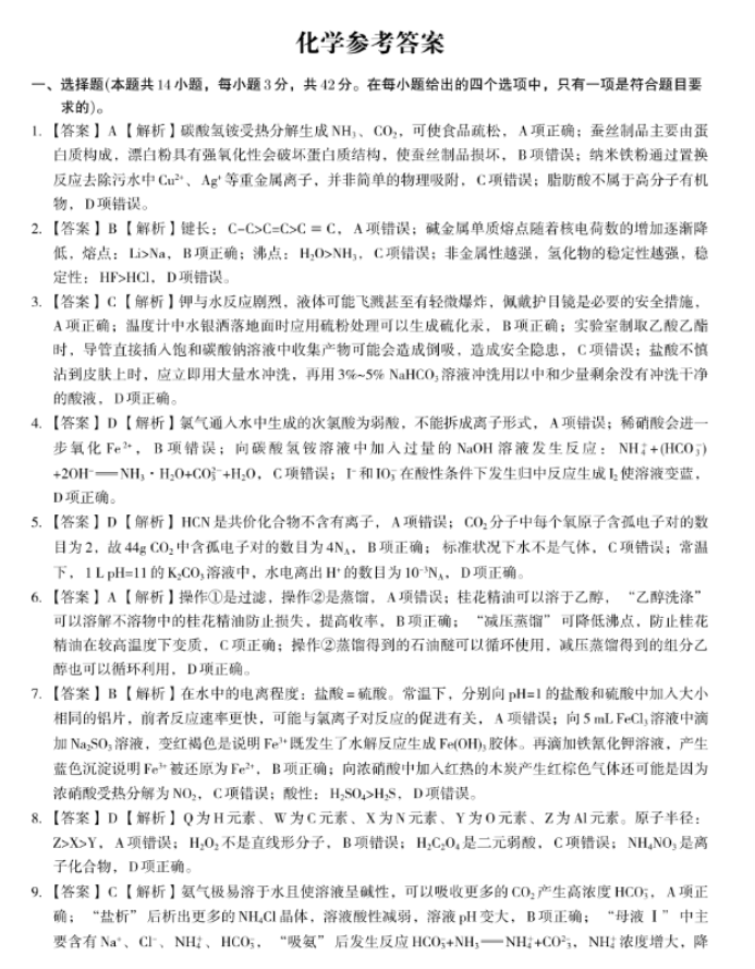 江西金太阳2025-2026学年高三上学期9月联考化学试卷及参考答案