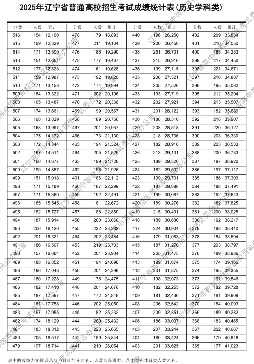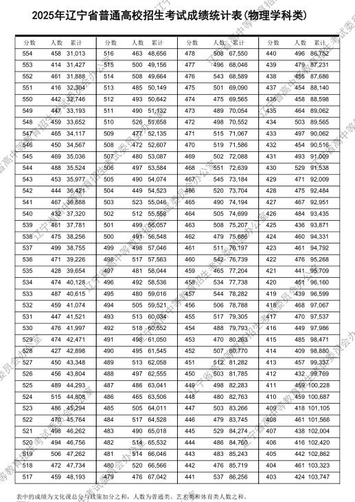 2025辽宁一分一段表完整版 高考成绩分布表