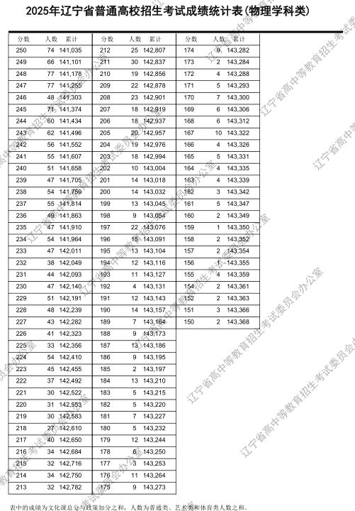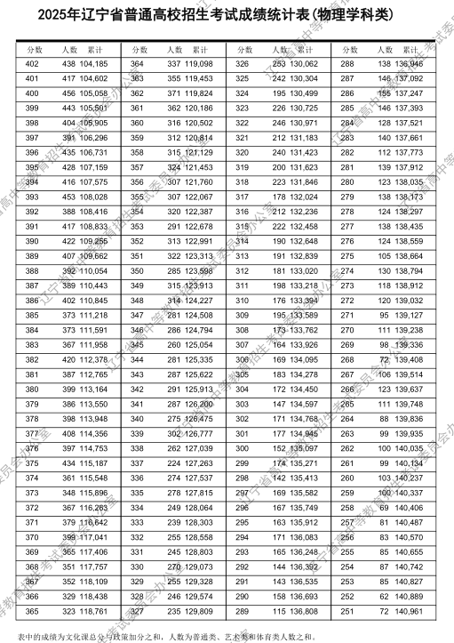 2025辽宁高考物理类一分一段表: