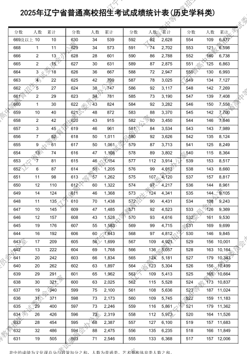 2025辽宁高考一分一段表完整版