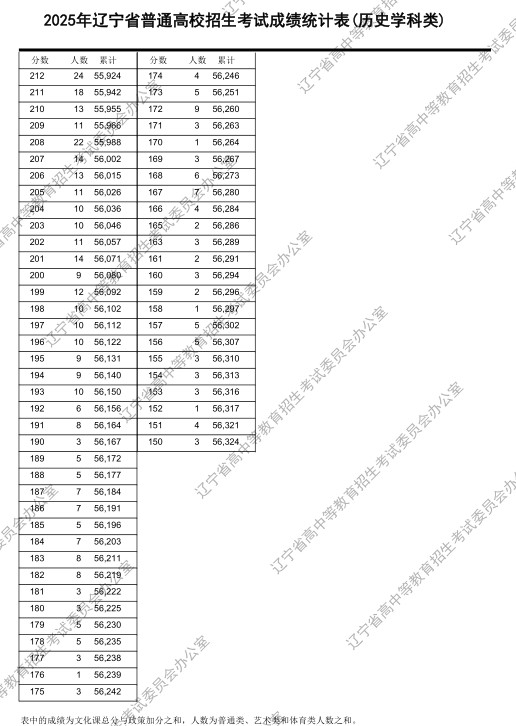 2025辽宁高考历史类一分一段表: