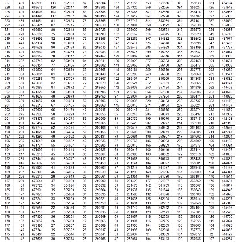 一分一段表,是将全省同科类考生的档案分(高考各科成绩+优惠加分)从高到低排列(分数相同的则为并列),再按每1分一段,统计“本段人数”。从本段向上一直到最高分段的所有“本段人数”相加,则为“累计人数”。下面是山东物理类一分一段表和位次对照表,仅供参考。