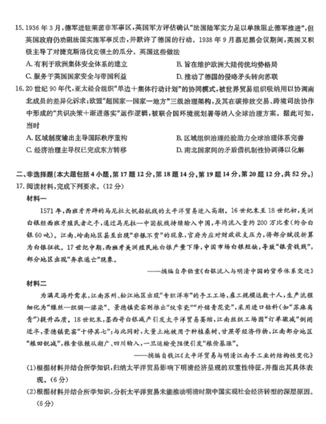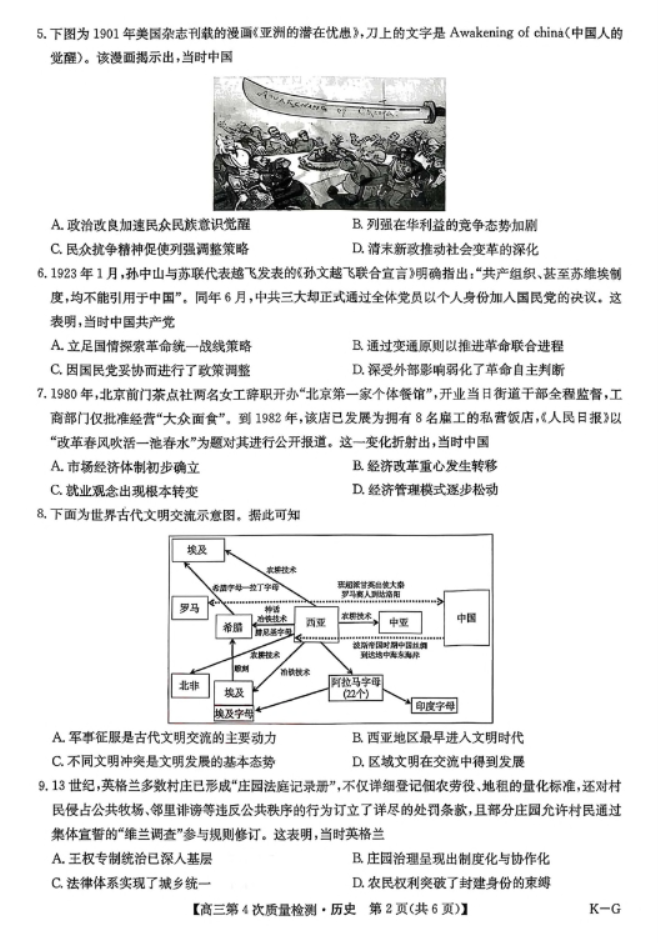 九师联盟2026届高三12月联考教学质量监测历史试题及答案解析