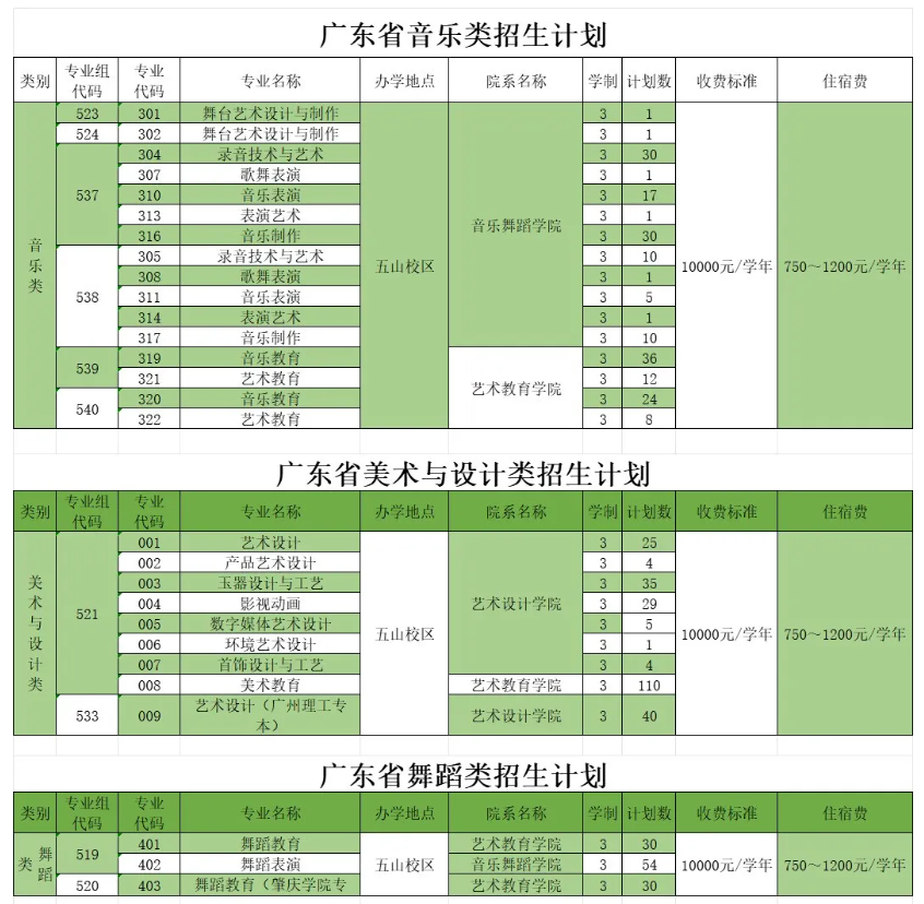 备注:具体的招生专业、计划以及填志愿的专业代码,以广东省教育考试院公布的《招生专业目录》为准