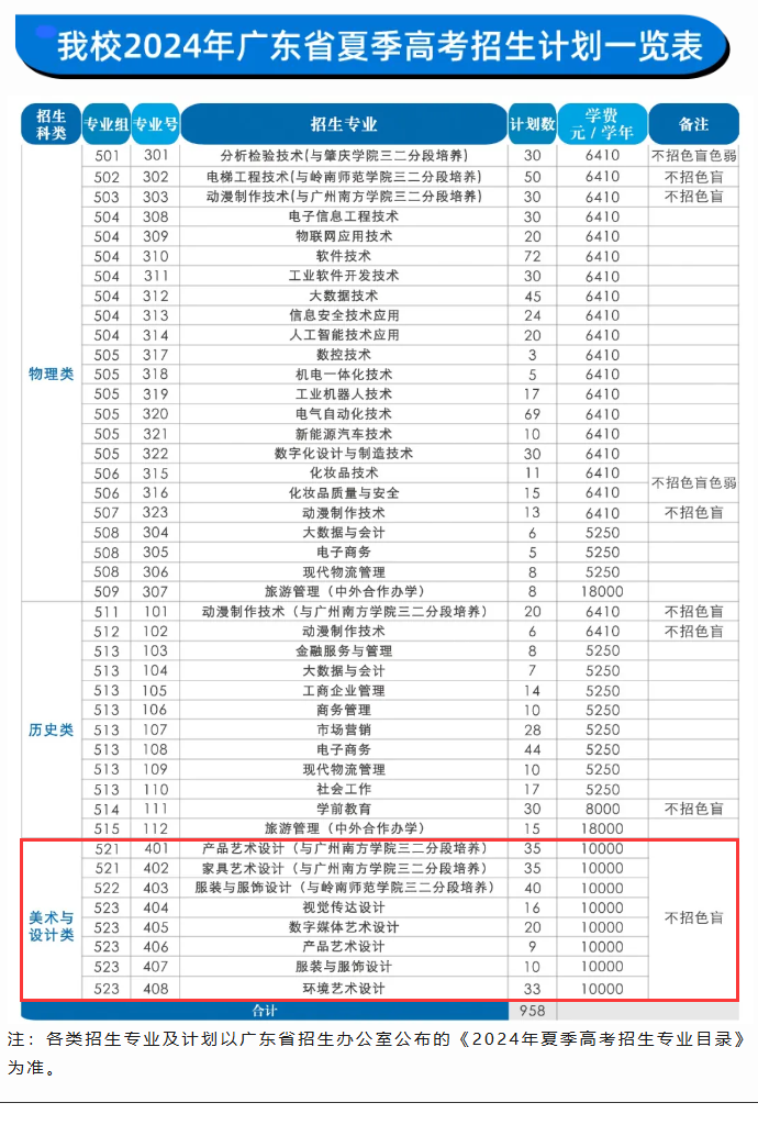 中山职院2024年广东省外普通高考招生计划-艺术类