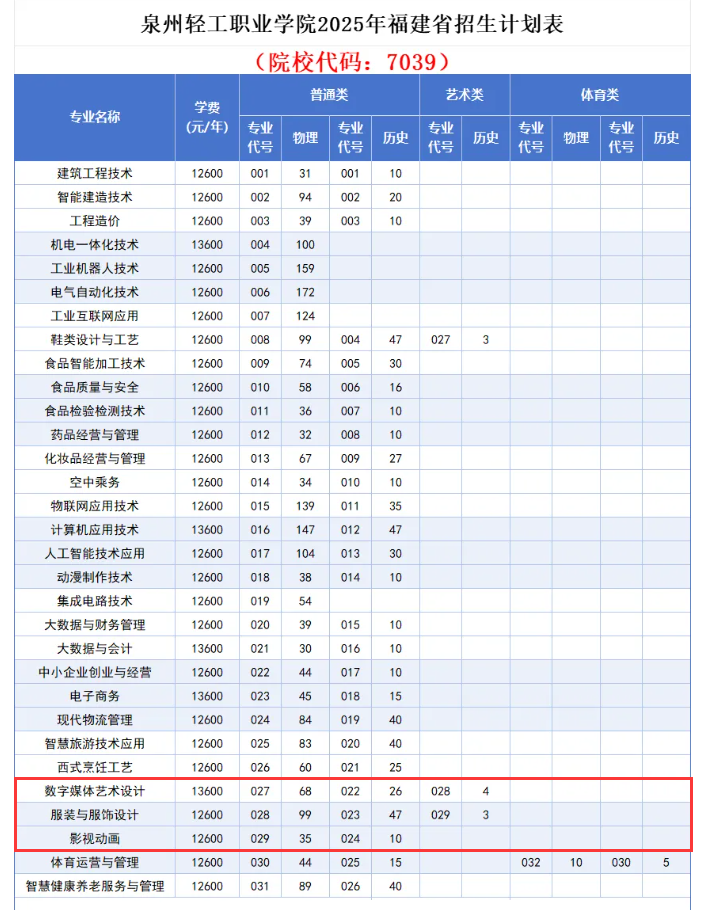 本文为大家整理的是泉州轻工职业学院2025年艺术类招生计划,主要包含招生专业、各专业招生人数等信息,希望对大家有所帮助,如有变动或异议,请以各省市教育考试院或学校公布的信息为准。