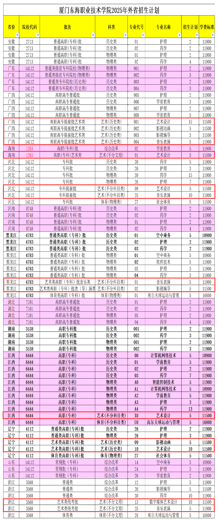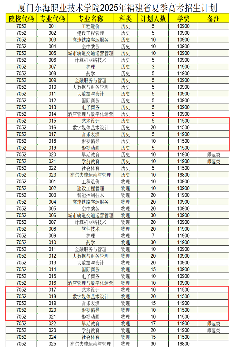 本文为大家整理的是厦门东海职业技术学院2025年艺术类招生计划,主要包含招生专业、各专业招生人数等信息,希望对大家有所帮助,如有变动或异议,请以各省市教育考试院或学校公布的信息为准。