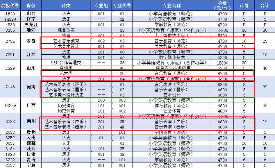 外省艺术类招生计划