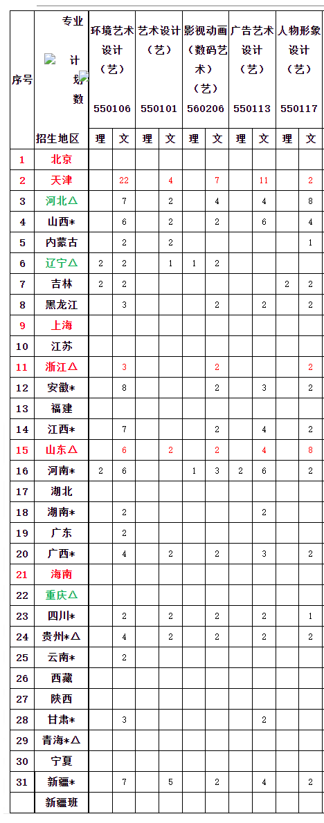 天津轻工职业技术学院2025年分省分专业招生计划-艺术类