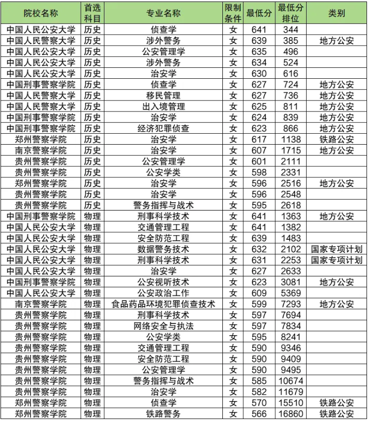 2025年贵州警校女生最低录取分数线:历史类是595分、物理类是566分。